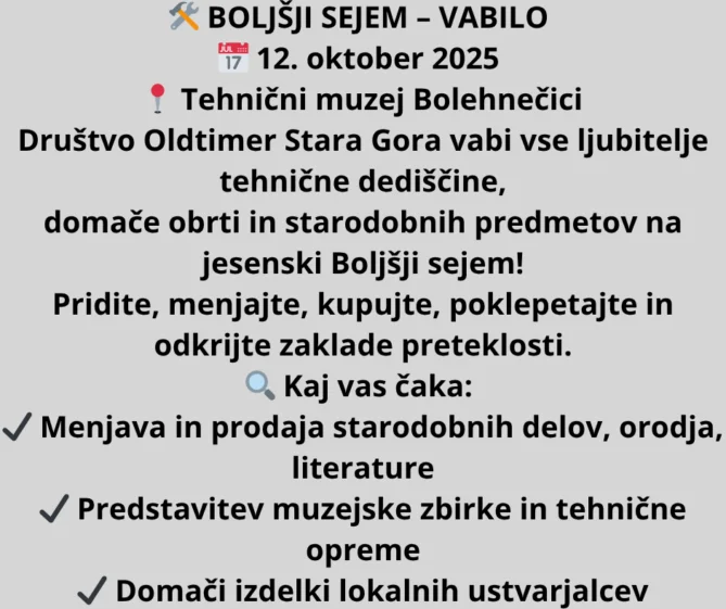 Predsednik tehnične komisije Edi Vuk se je zahvalil za pridobitev novih eksponatov, ki so jih skrbno konzervirali in restavrirali ter dali na ogled v muzej v Bolehnečicih. Trenutno se v muzeju nahaja približno 7.000 razstavljenih eksponatov, na katere so zelo ponosni.