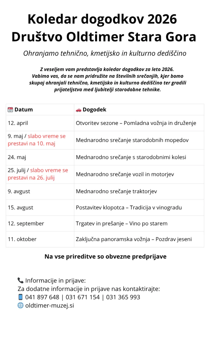 Všečkajte stran društva Oldtimer Stara Gora in bodite na tekočem z najnovejšimi dogodki, utrinki in novostmi!