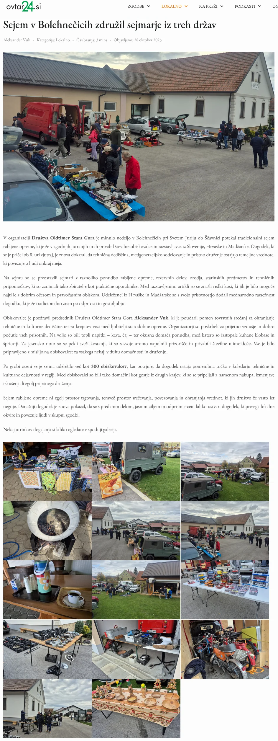 V soboto, 25. januarja, je Društvo za ohranjanje tehnične, kmetijske, turistične in premične dediščine Oldtimer Stara Gora izvedlo 21. redni volilni občni zbor. Začasni zastopnik društva Aleksander Vuk je v svojem poročilu izpostavil, da je glavna aktivnost društva ohranjanje tehnične in kulturne dediščine. Izvedli so štiri mednarodna
